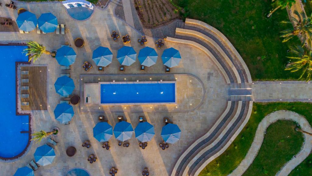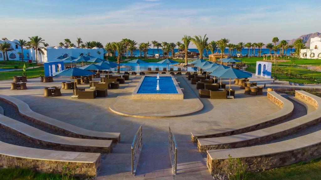 على بعد ساعة واحدة من شرم الشيخ، وقريب من أشهر معالم دهب,  قريب من أماكن التسوق والمطاعم المحلية في المدينة,  شاطئ رملي ناعم وكبير، هتقدر تستمتع فيه بالاسترخاء أو السباحة, غرف واسعة بشرفات بتطل على البحر أو الحدائق الخضراء,بوفيه مفتوح للإفطاروالعشاء بأشهى الأطباق, حمام سباحة كبير ومميز وسط أجواء هادية, سبا متكامل عشان تسترخي وتاخد وقت لنفسك, مركز رياضي مجهز بالكامل لعشاق اللياقة,  أنشطة ترفيهية زي البلياردو، رمي السهام، ويوجا على البحر, قريب من أماكن الغطس المشهورة في دهب، لعشاق المغامرة والسنوركلينج,  ليالي مميزة مع حفلات موسيقية وفعاليات ترفيهية, كافيه وبار بيقدم مشروبات وأجواء مريحة طول اليوم